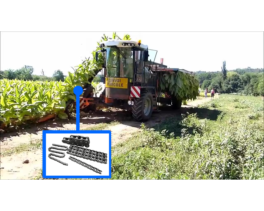 煙草收割所使用的部件如煙葉采收抱煙機(jī),其傳動(dòng)鏈能夠有效幫助驅(qū)動(dòng)收割部件進(jìn)行收割。