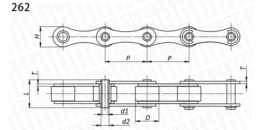 上圖為不銹鋼空心銷軸鏈262型的結(jié)構(gòu)圖。