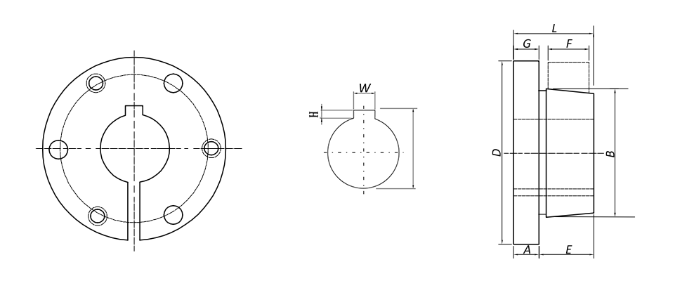 優(yōu)質(zhì)結(jié)構(gòu)鋼或高牌號灰鑄鐵,表面發(fā)藍處理,能夠很好的防銹。QTL錐套很容易從輪轂上拆卸下來,在錐套的輪轂上孔中使用上拉螺栓即可鉆出襯套。