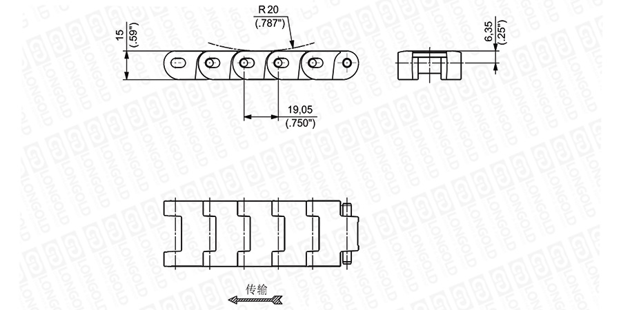 上圖為3/4"節(jié)距重載鏈板 UCC 138系列的結(jié)構(gòu)圖,圖紙中已標(biāo)明部分尺寸。