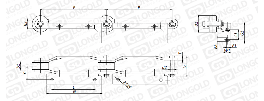 附件是為了將夾具安裝在鏈條上的零部件??筛鶕?jù)客戶要求設(shè)定安裝間隔。