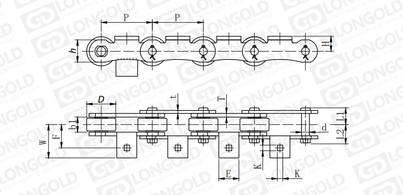 附件是為了將夾具安裝在鏈條上的零部件。可根據(jù)客戶要求設(shè)定安裝間隔。