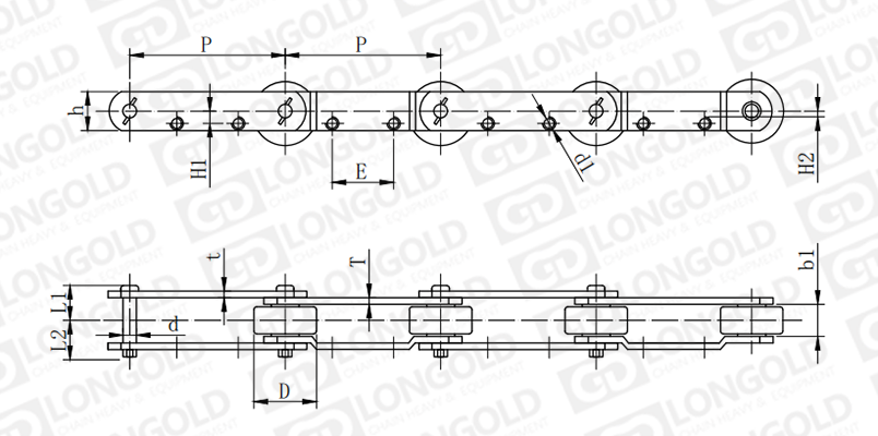 采用特殊鏈板,帶GNA2附件,即單側(cè)鏈板帶兩個帶螺紋中孔。