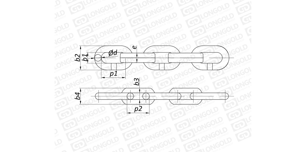 上圖為強化型礦用寬帶鏈的結構圖。