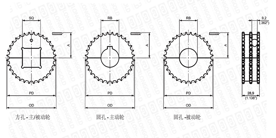 1.圓孔鏈輪表示直徑,方孔鏈輪表示邊長(zhǎng)。