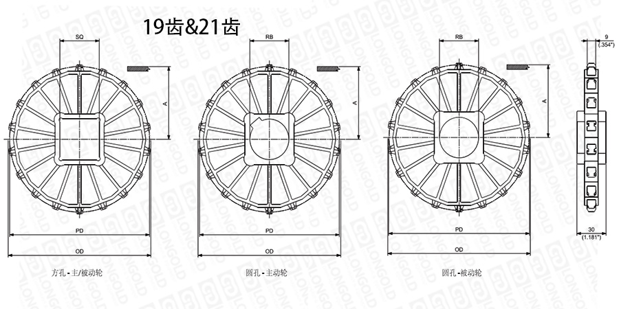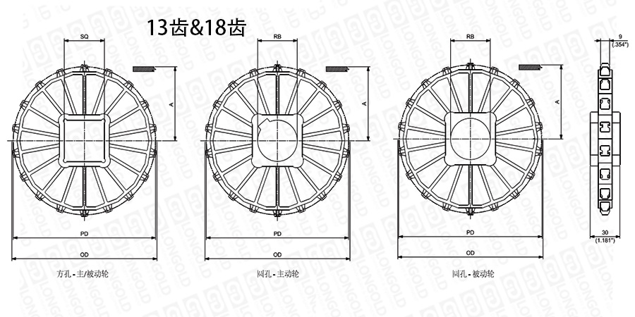 注:圓孔鏈輪表示直徑,方孔鏈輪表示邊長。