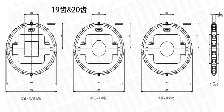 1.圓孔鏈輪表示直徑,方孔鏈輪表示邊長。