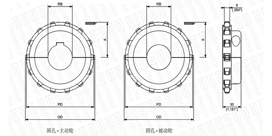 1.圓孔鏈輪表示直徑,方孔鏈輪表示邊長。