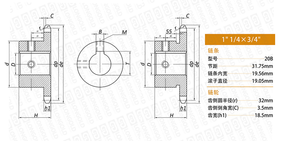 上圖為20B-1 成品孔鏈輪的結(jié)構(gòu)圖。