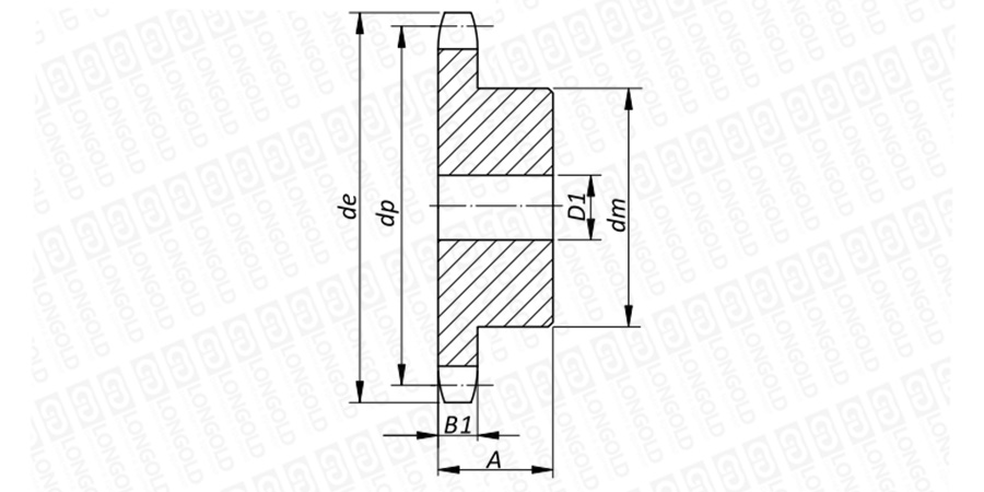 上圖為B系列不銹鋼鏈輪的結(jié)構(gòu)圖。
