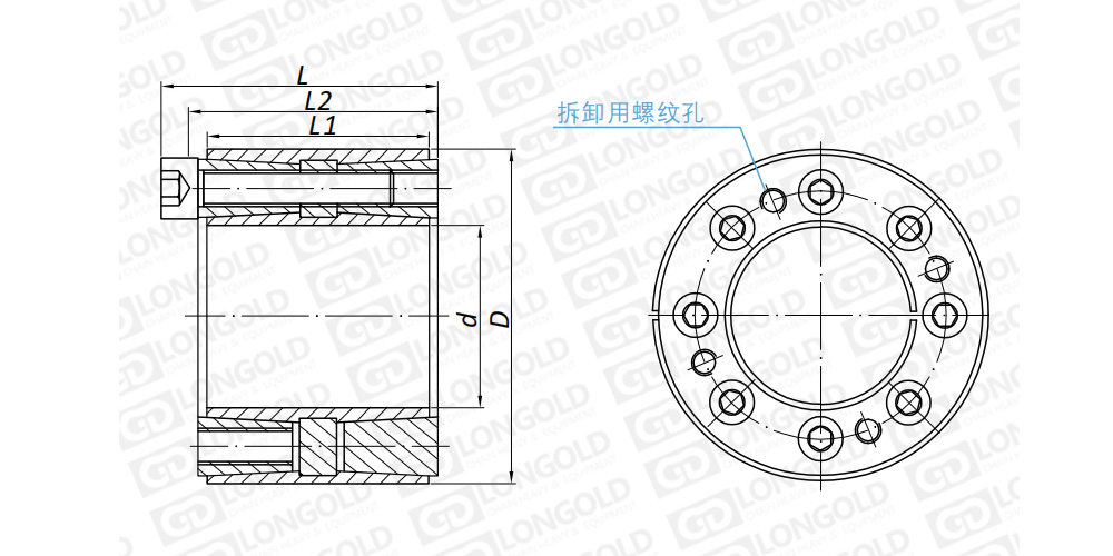 逐步將B?錐度套從另?端與內(nèi)、外分離,完成以上兩個(gè)步驟后,就可以?便的拆下D型脹緊聯(lián)結(jié)套。