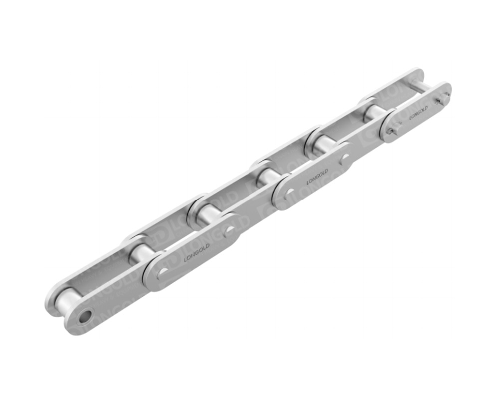 鏈條節(jié)距為標(biāo)準(zhǔn)傳動(dòng)用滾子鏈的2倍,滾子形式為小滾子,適用于長距離的物料輸送。鏈板為平板形狀。不銹鋼鏈條具有良好的耐腐蝕性能??墒褂脺囟葏^(qū)域從-20°C到400°C,可對(duì)應(yīng)更廣泛溫度區(qū)域。