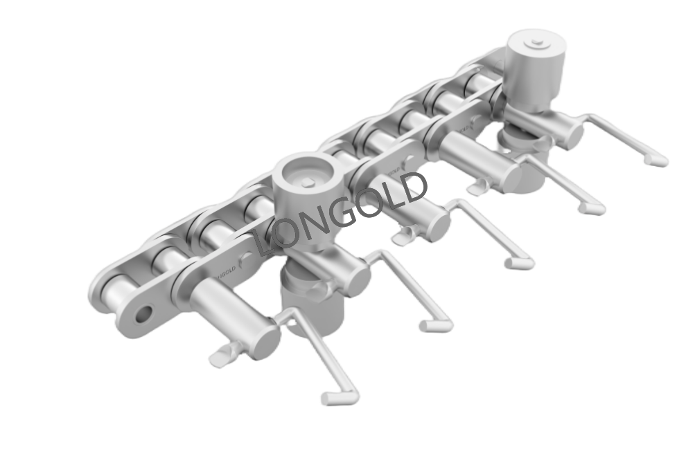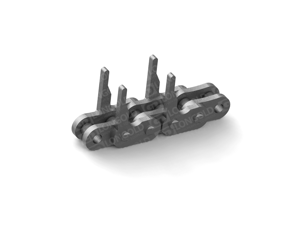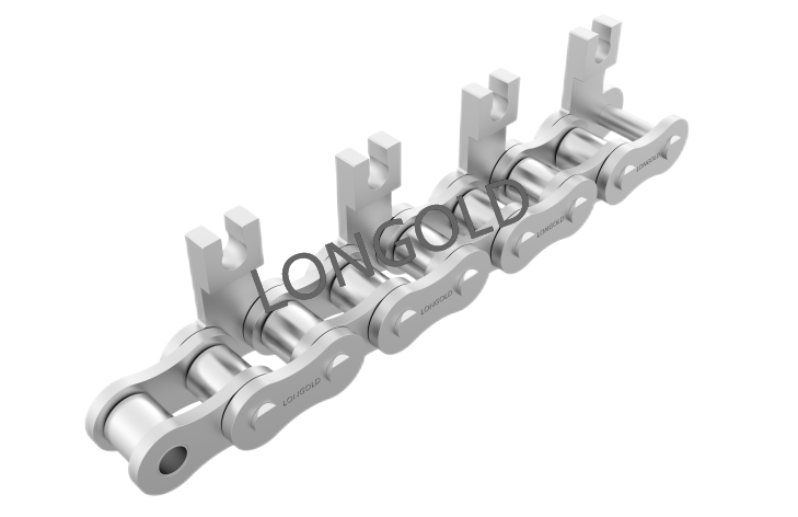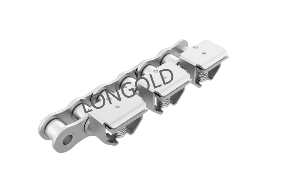 鏈條本體采用35(06C)鏈條,外鏈板采用特殊附件的結構,鏈板向上延伸加裝齒片。采用不銹鋼SUS304材質(zhì),用于電子行業(yè)的電子元件生產(chǎn)輸送線