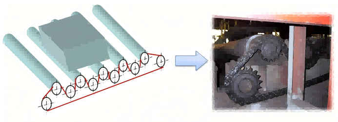因為鏈條兩面都能使用,1條鏈條可使用多個鏈輪,在1個動力部可容易地驅動大量的滾筒。